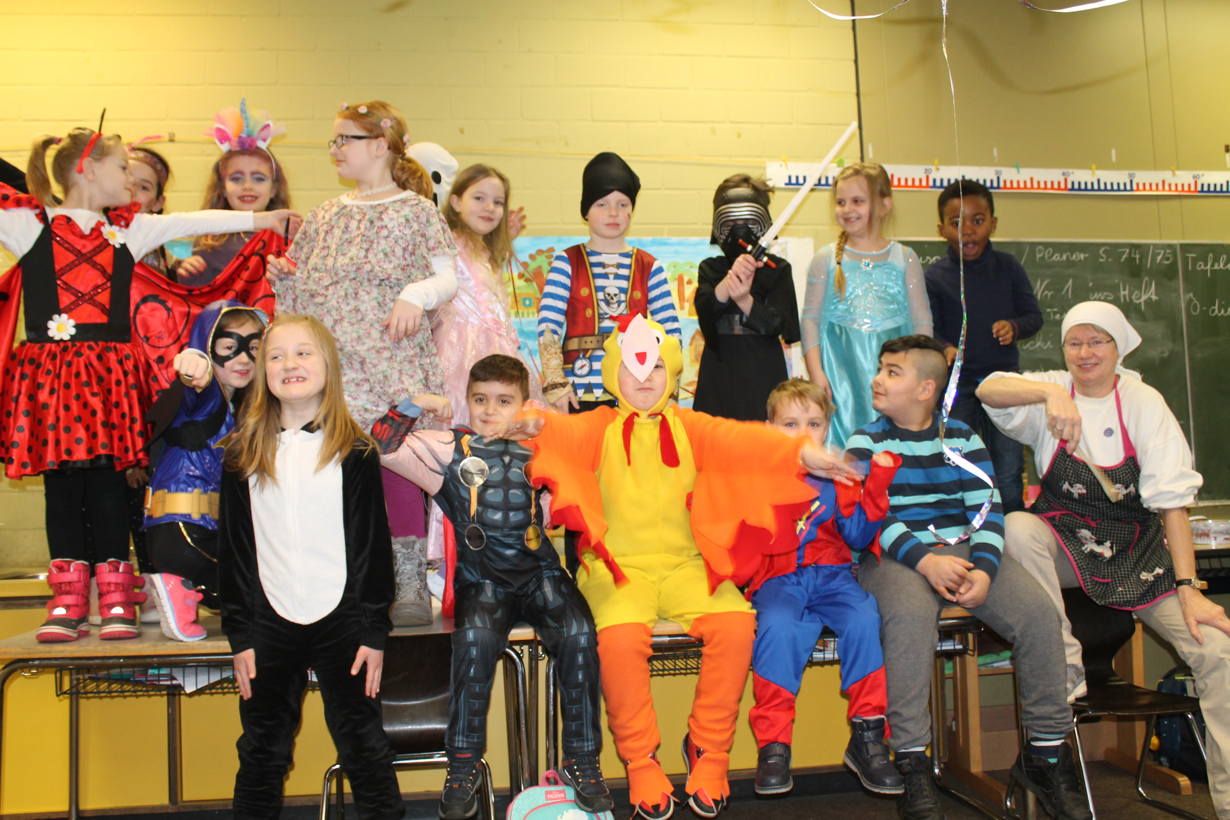 Auch in diesem Jahr haben alle Klassen der Grundschule am Hanloh Rosenmontag gefeiert. Die Schule wurde bunt dekoriert. In jeder Klasse gab es tolle Buffets, lustige Spiele und viel gute Laune. Das Highlight war die jedes Jahr wieder durchgeführte Polonaise aller Schüler und Lehrer durch die Schule. Viel Spaß mit den Bildern.