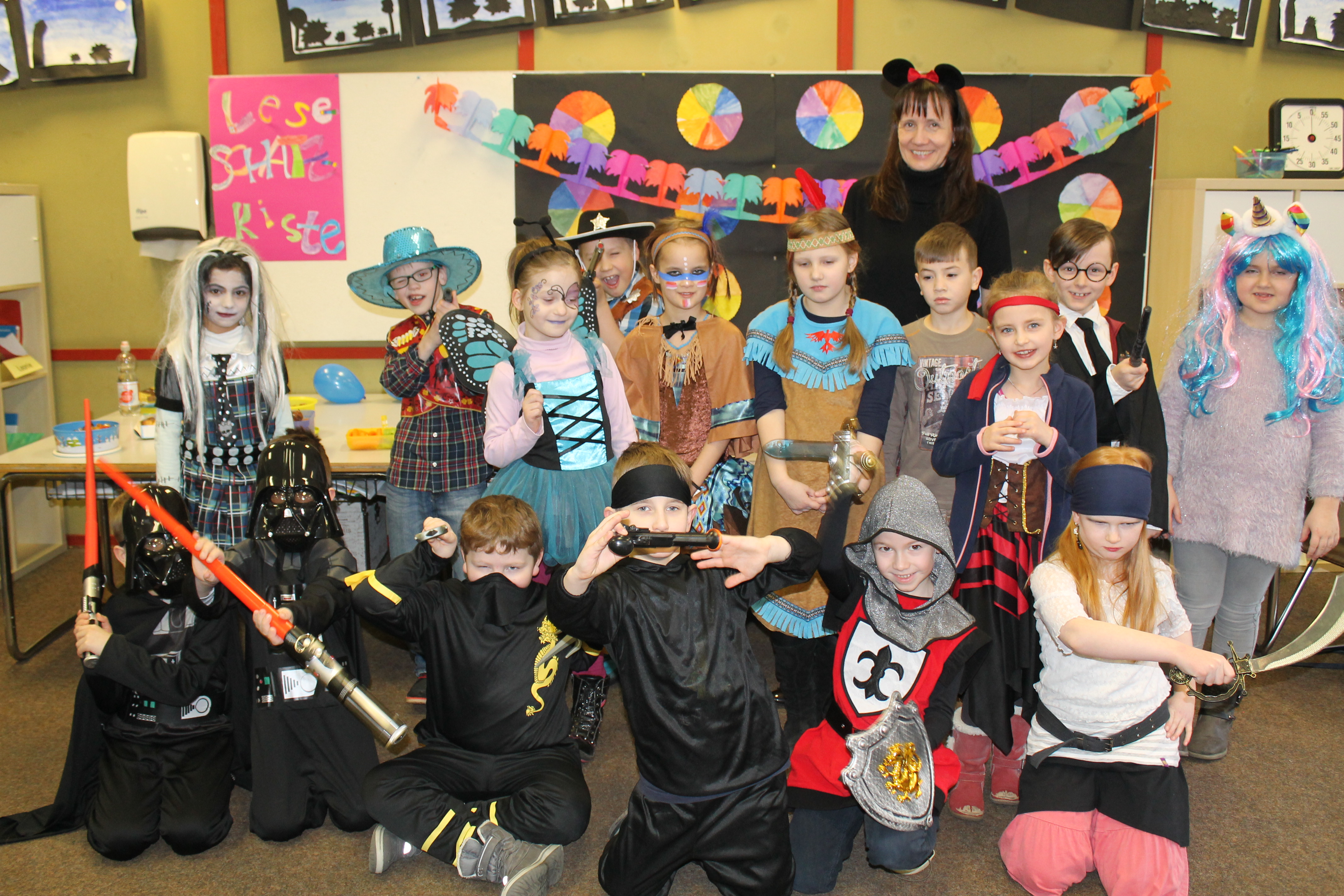 Auch in diesem Jahr haben alle Klassen der Grundschule am Hanloh Rosenmontag gefeiert. Die Schule wurde bunt dekoriert. In jeder Klasse gab es tolle Buffets, lustige Spiele und viel gute Laune. Das Highlight war die jedes Jahr wieder durchgeführte Polonaise aller Schüler und Lehrer durch die Schule. Viel Spaß mit den Bildern.