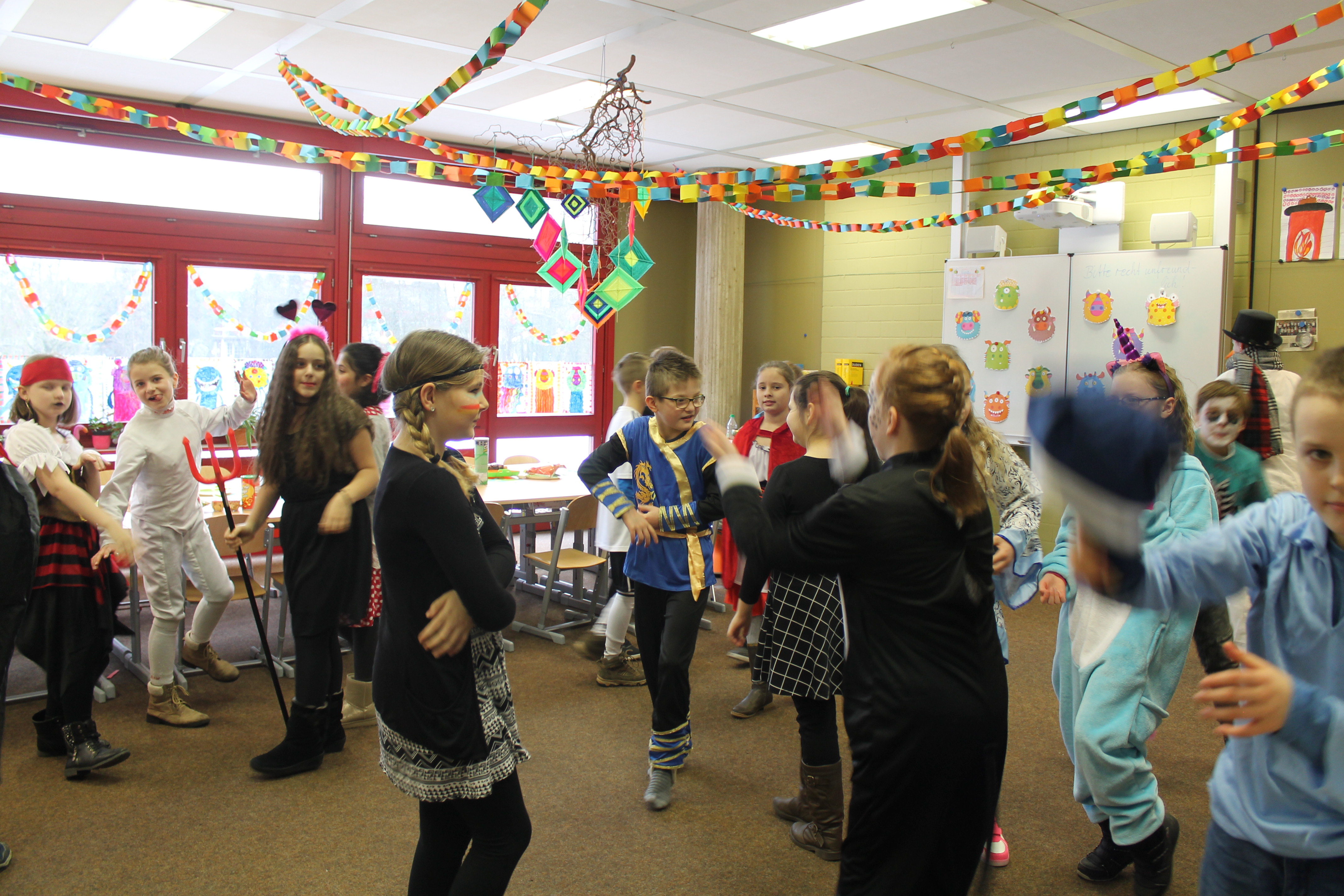Auch in diesem Jahr haben alle Klassen der Grundschule am Hanloh Rosenmontag gefeiert. Die Schule wurde bunt dekoriert. In jeder Klasse gab es tolle Buffets, lustige Spiele und viel gute Laune. Das Highlight war die jedes Jahr wieder durchgeführte Polonaise aller Schüler und Lehrer durch die Schule. Viel Spaß mit den Bildern.