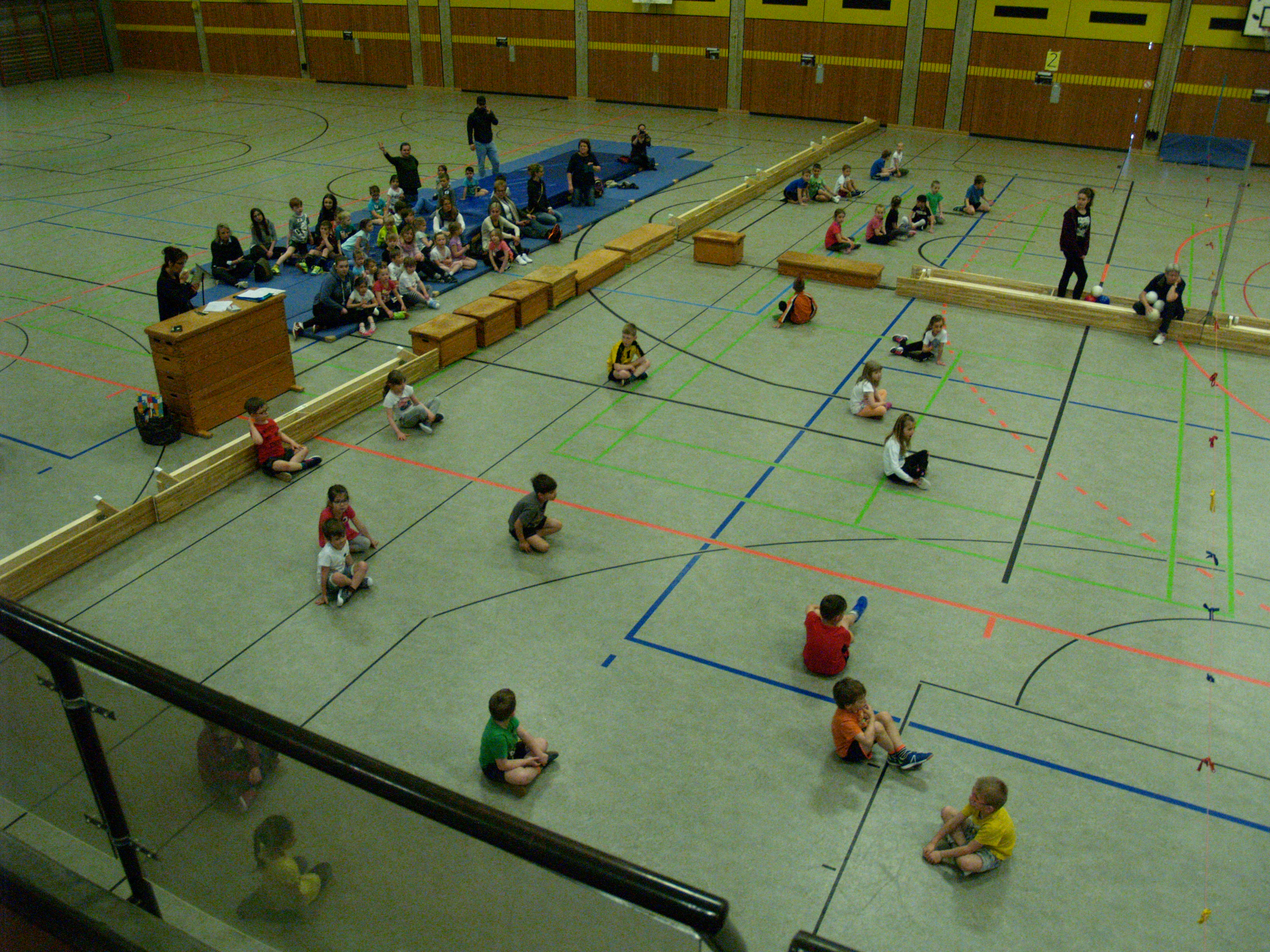 Heute fand das alljährliche Völkerballturnier in der Hindenburghalle statt. Alle 3. und 4. Klassen unserer Schule haben daran teilgenommen. Die Schüler und Schülerinnen hatten wie jedes Jahr viel Spaß und haben ihre Klassenkameraden super von der Tribüne aus angefeuert. Auch viele Eltern haben sich das Spektakel von den Rängen aus angesehen.